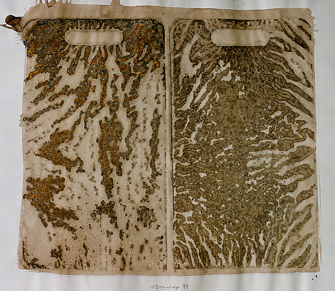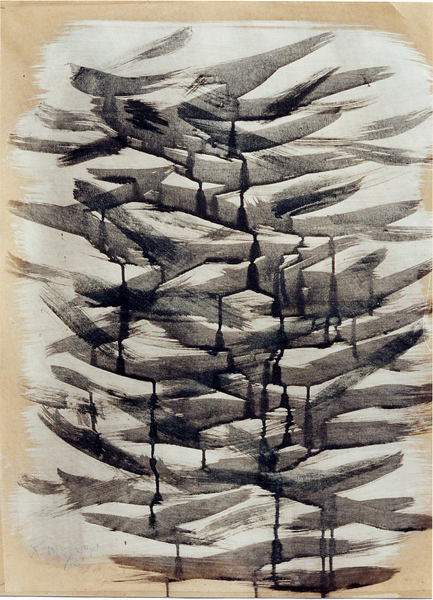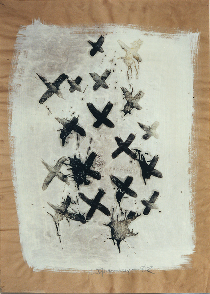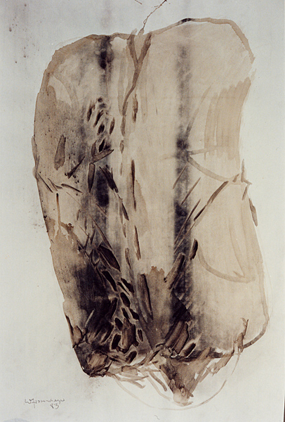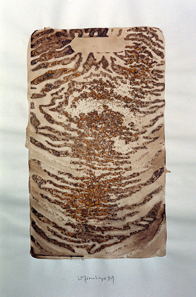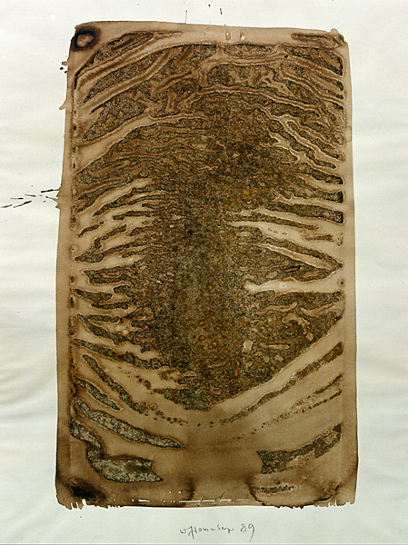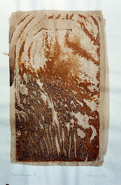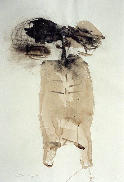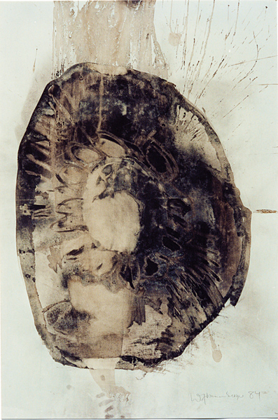 Den Staub eingefangen, 1982, Eitempera und Braunkohlestaub auf Natronpapier grundiert, 85x60 cm