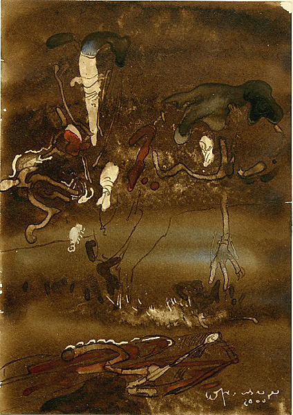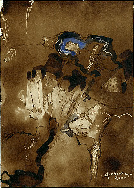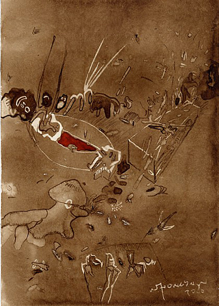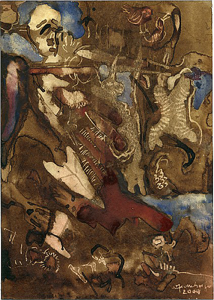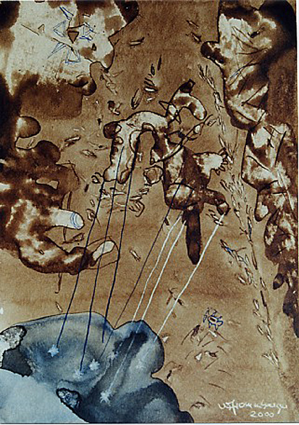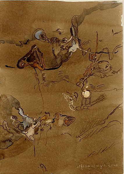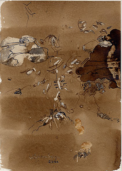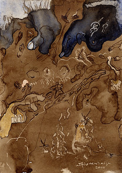 abgesunken - aufgetaucht, 1999, Bistertinte, Aquarell, Zeichnung auf Aquarellkarton, 21x14,5 cm (9 von 120 Blättern)